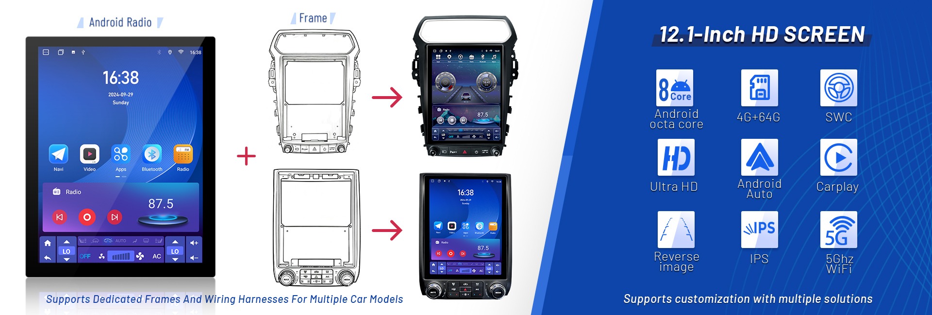 9.7 מסך מגע רדיו אנדרואיד אינץ 'עם מסך מגע אלחוטי carplay רכב אנדרואיד יחידת ראש המולטימדיה עבור פורד חוקר 2011-2019